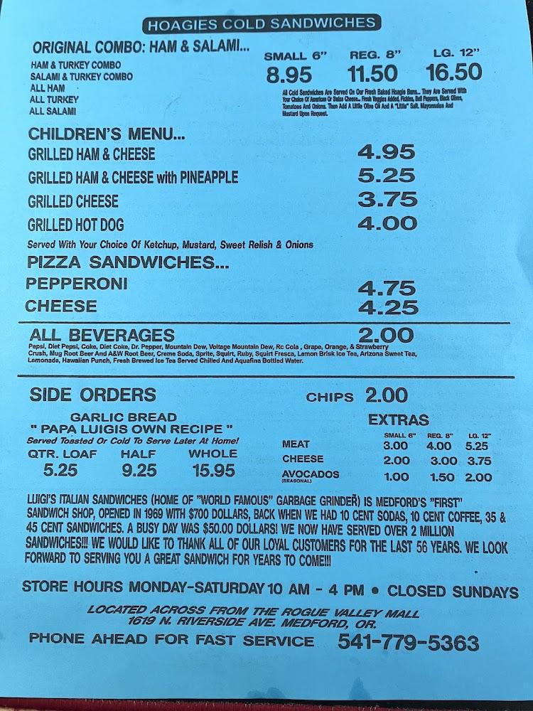 Welcome to Luigi's Italian Sandwiches, your go-to spot for delicious, traditional Italian sandwiches in Medford, Oregon. Located at 1619 N Riverside Ave, we pride ourselves on offering a casual dining experience in a historic setting. Enjoy our scrumptious sandwiches, perfect for lunch or a quick dinner, available for dine-in, takeout, or delivery. With wheelchair-accessible seating and amenities, we cater to everyone, including families and students. Our laid-back atmosphere, combined with quality local specialties, ensures you'll leave satisfied. Join us today, and discover why Luigi's is a beloved choice for locals and visitors alike!